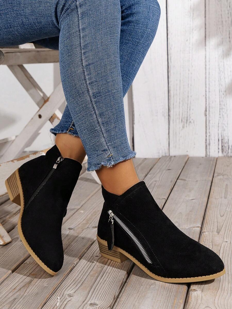 Pointed Pattern Side Zipper Heeled Boots