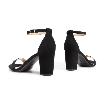 These chunky heel sandals are designed with both aesthetics and practicality in mind. The combination of a sleek faux suede upper, open-toe structure, and sturdy outsole makes them a well-rounded choice for various occasions.