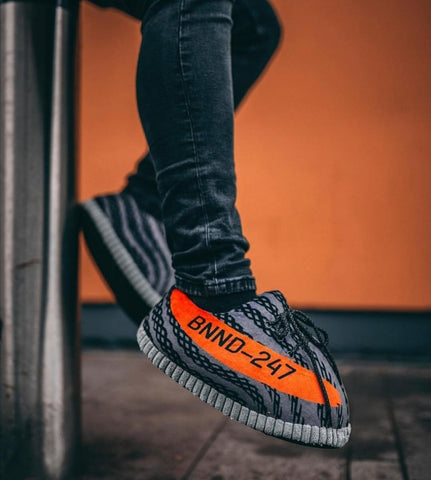 Experience all-day cozy comfort indoors and outdoors with these fantastic slippers that mimic trendy sneakers. The stylish orange and grey design makes these slippers stand out, making you the center of attention at your next house party or family gathering. Enjoy the comfort of home anywhere with these exclusive, custom slippers.