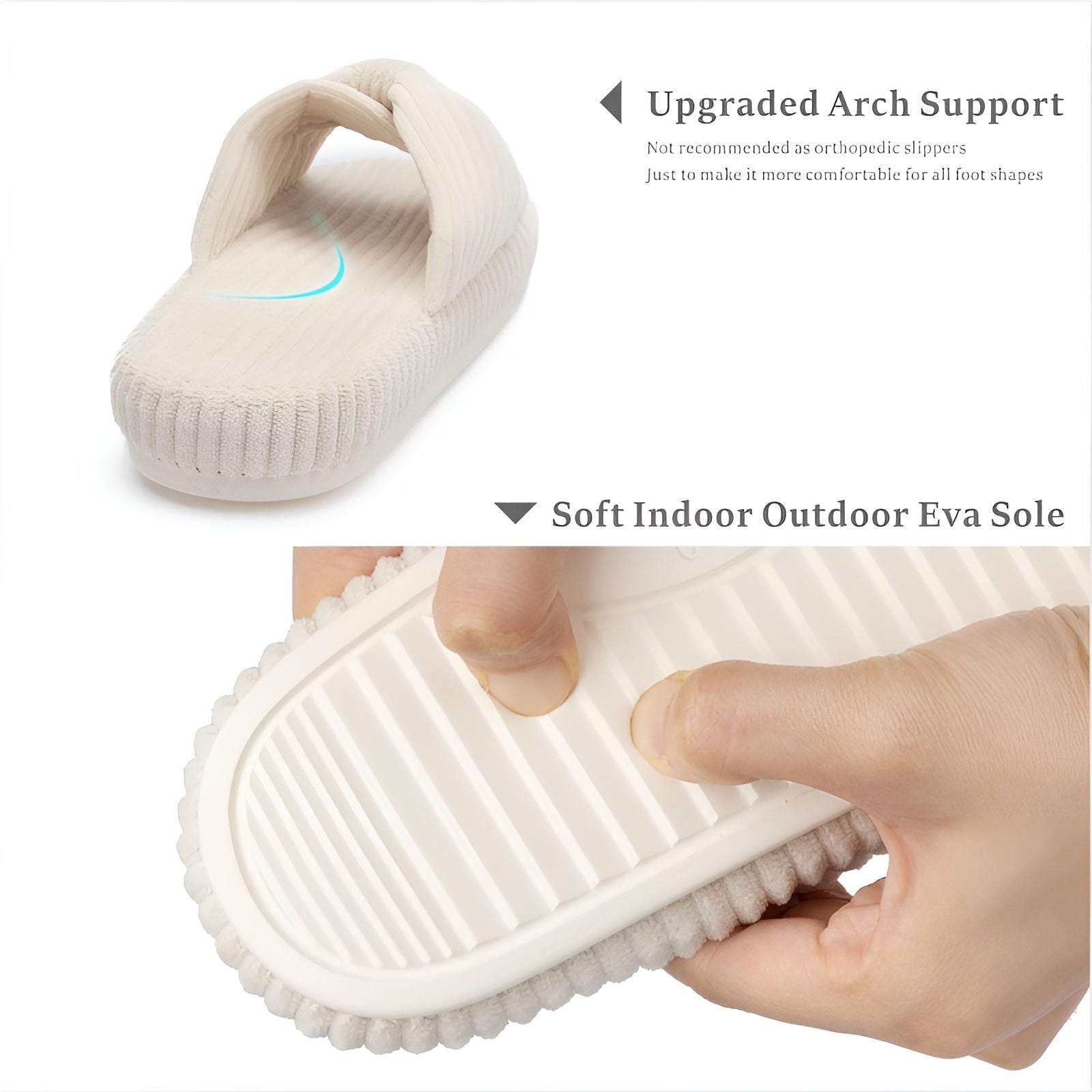 These corduroy slide slippers are suitable for various indoor settings, providing everyday support.