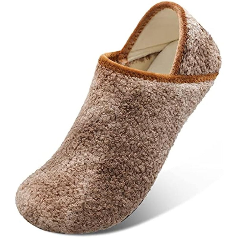 • Minimalist House Shoes: These slippers with furry curly fur uppers, are more stylish compared to old-school bedroom slippers or clunky house shoes. They feel like socks but protect your feet like house shoes.