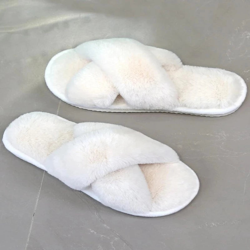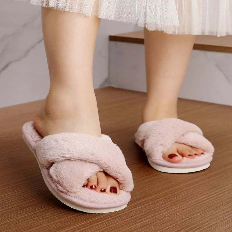 Our Cross Strap Fluffy Casual Slippers are the epitome of comfort and style for your indoor relaxation featuring a cross strap design and a luxuriously fluffy texture that provides softness. They seamlessly blend relaxation and fashion, making them suitable for lounging at home or adding a touch of comfort to your casual outfits.