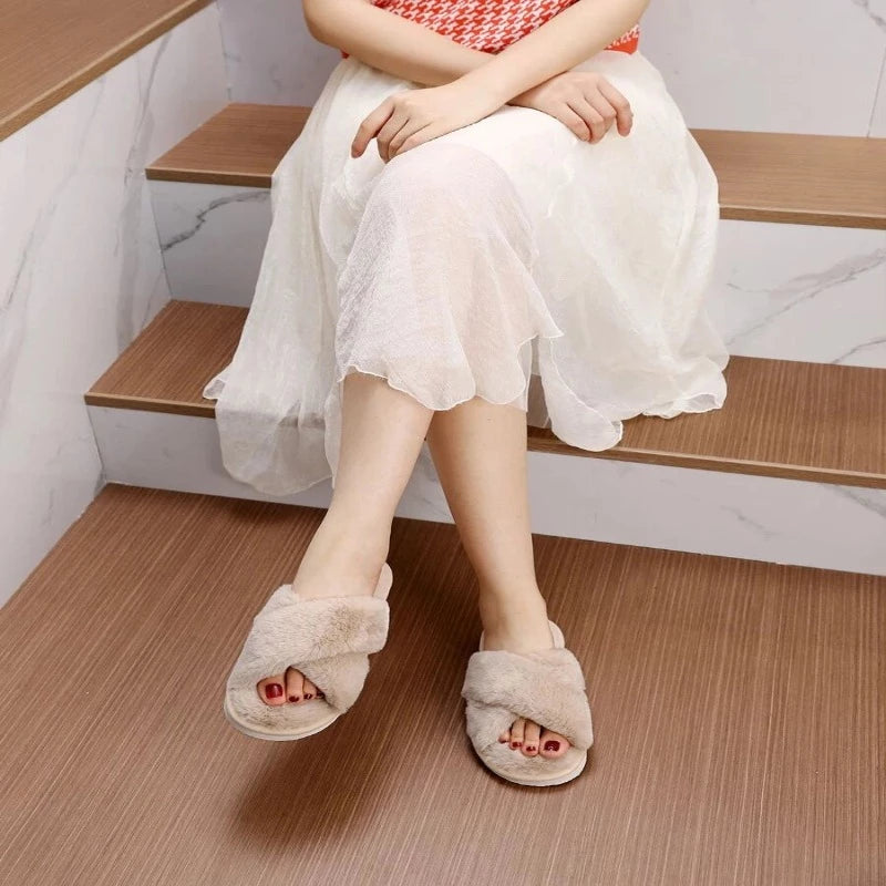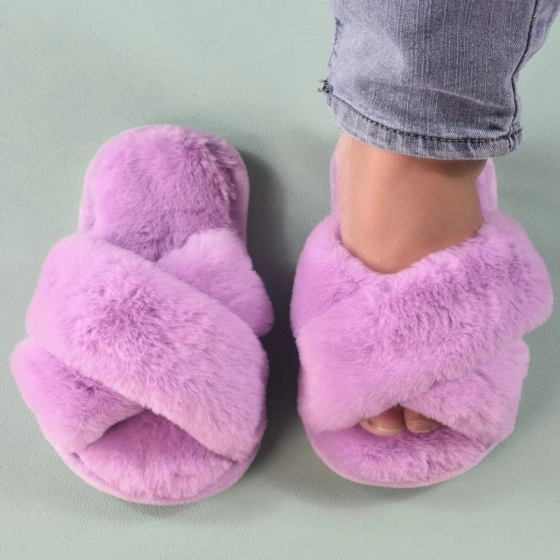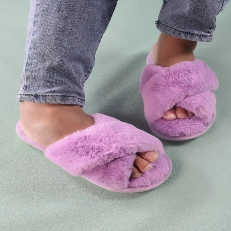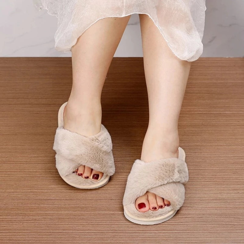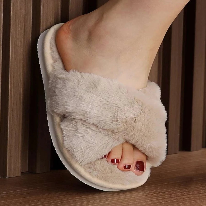Cross Strap Fluffy Slippers