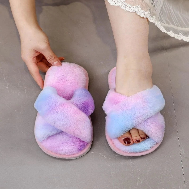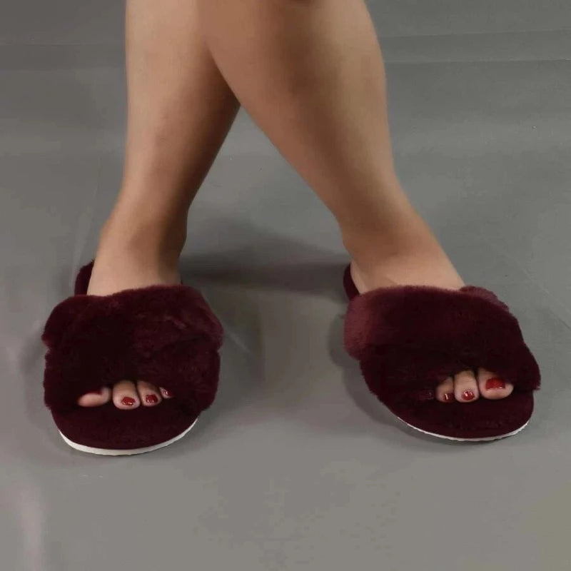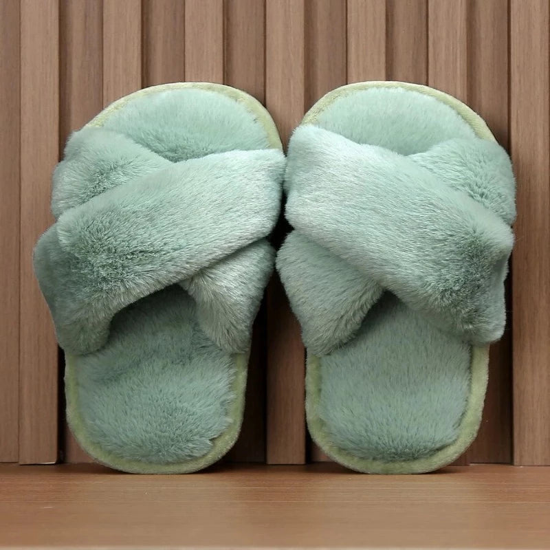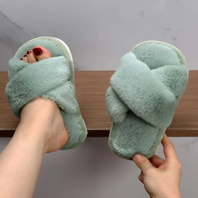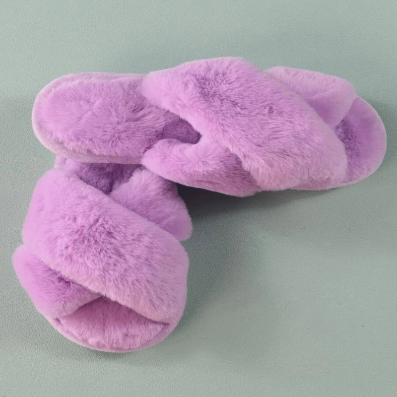 Cross Strap Fluffy Slippers