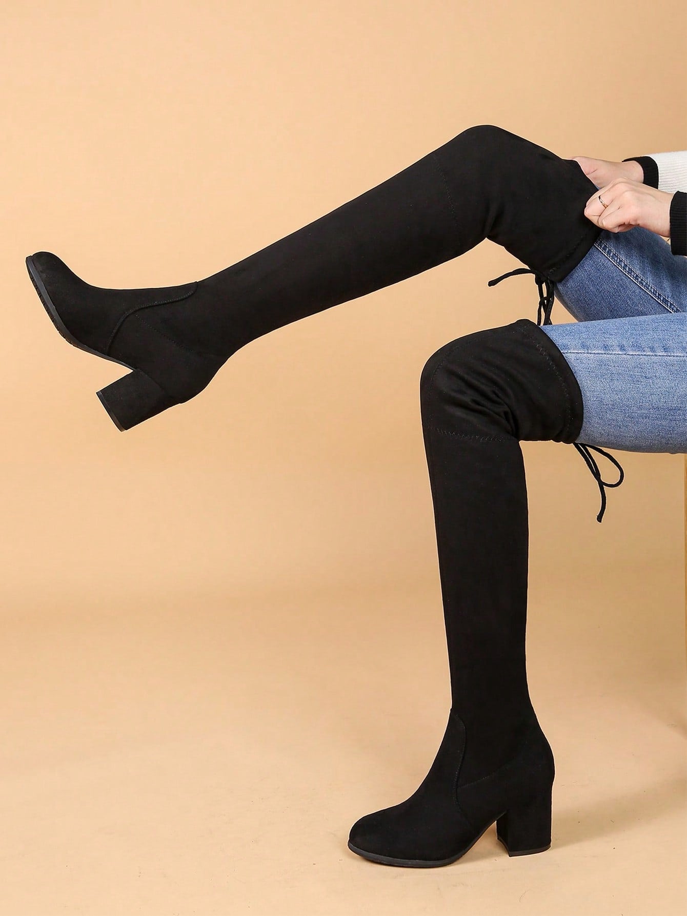 Fashionable Stretchy Fabric Chunky heel Boots