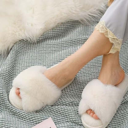 - FUZZY HOUSE SLIPPERS: Deluxe faux fur uppers and footbeds cradle you in luxurious softness.