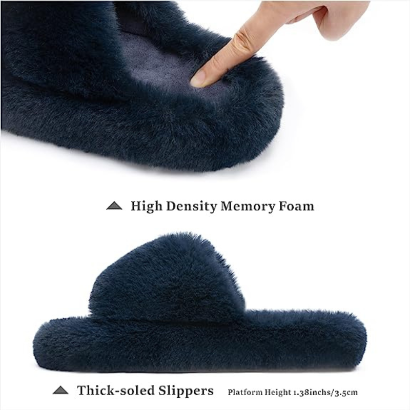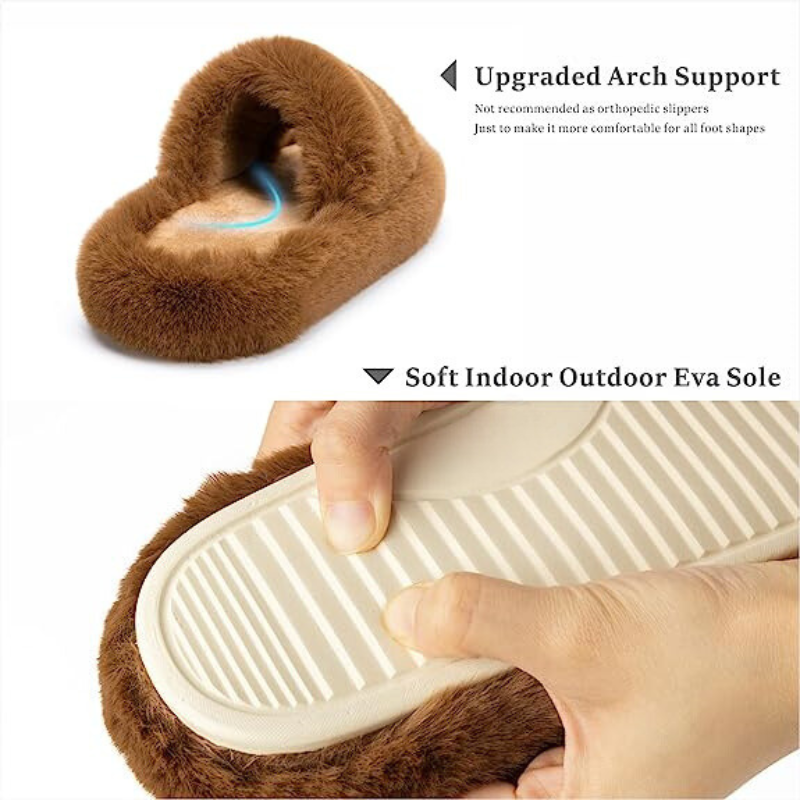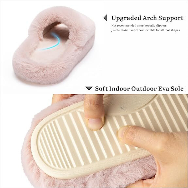 • The faux fur of these slippers is high quality, luxurious, soft, and warm. The slippers are classic and simple in shape, and suitable for all clothes.