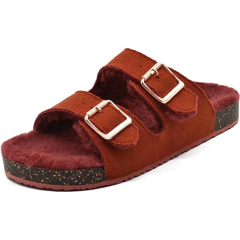 Adjustable metal buckles - flexible suede leather strap with a handy adjustable button can adapt to your feet width at ease, providing sufficient support. Breathable sandals and slippers keep feet refreshing and comfy.