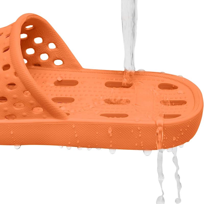 • Quick Drying: Bath slippers fully covered drainage holes, accelerate water drain out and perspiration and keep the feet dry.