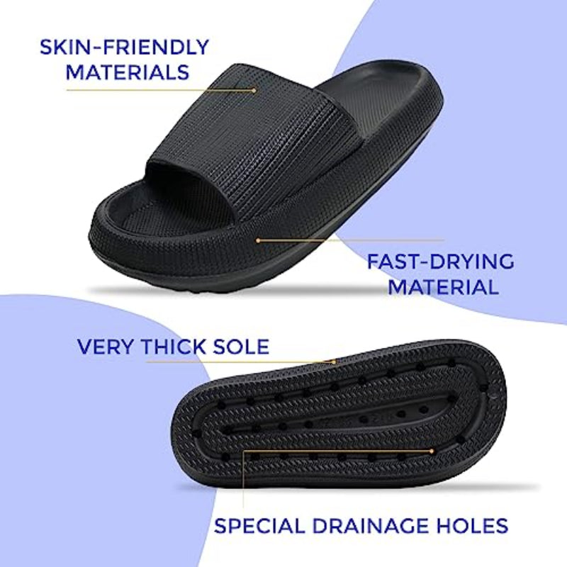 • Versatile: Not only are super comfortable but these women's cloud slides are also very stylish! Simple and trendy, these slippers are perfect for home wear, casual wear with summer attire, beach, pool, spa, or shower!