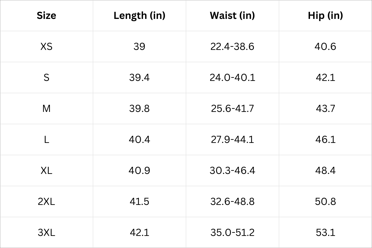 Size Chart (Inches):