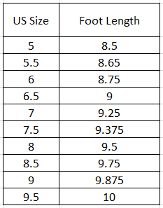 Size Chart (Inches):