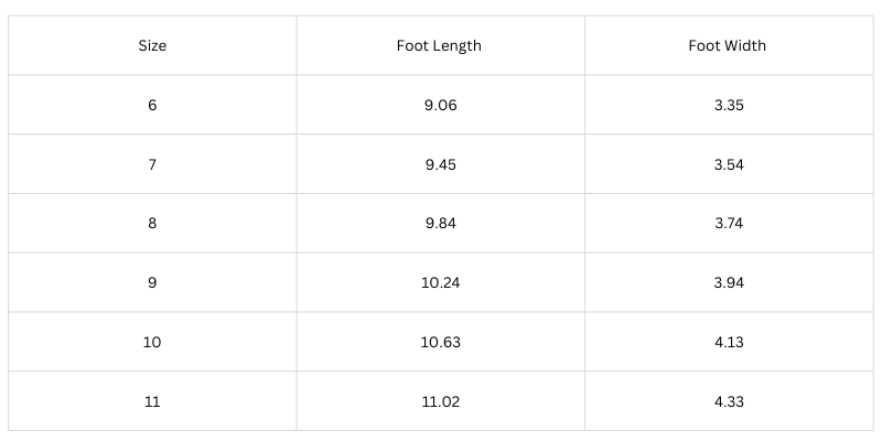 Size Chart (Inches):