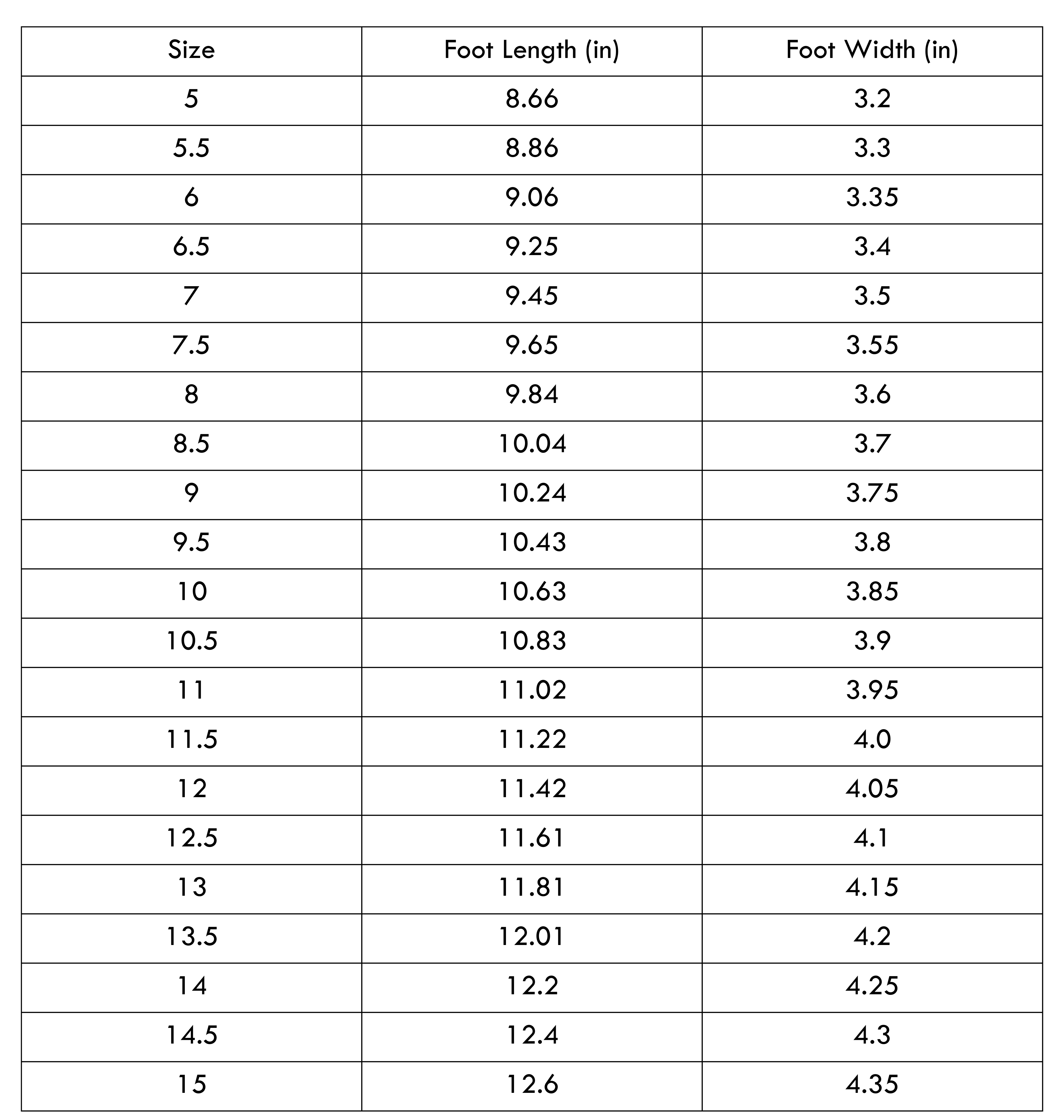 Size Chart(inches):